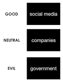Given all this, for those of us who believe the internet should be a place where people can work, debate, shop and live without the threat of persistent surveillance, it is easy to assume certain actors are inherently good or evil. Governments must be evil — and the online public sphere, those organizing via social media must be good.