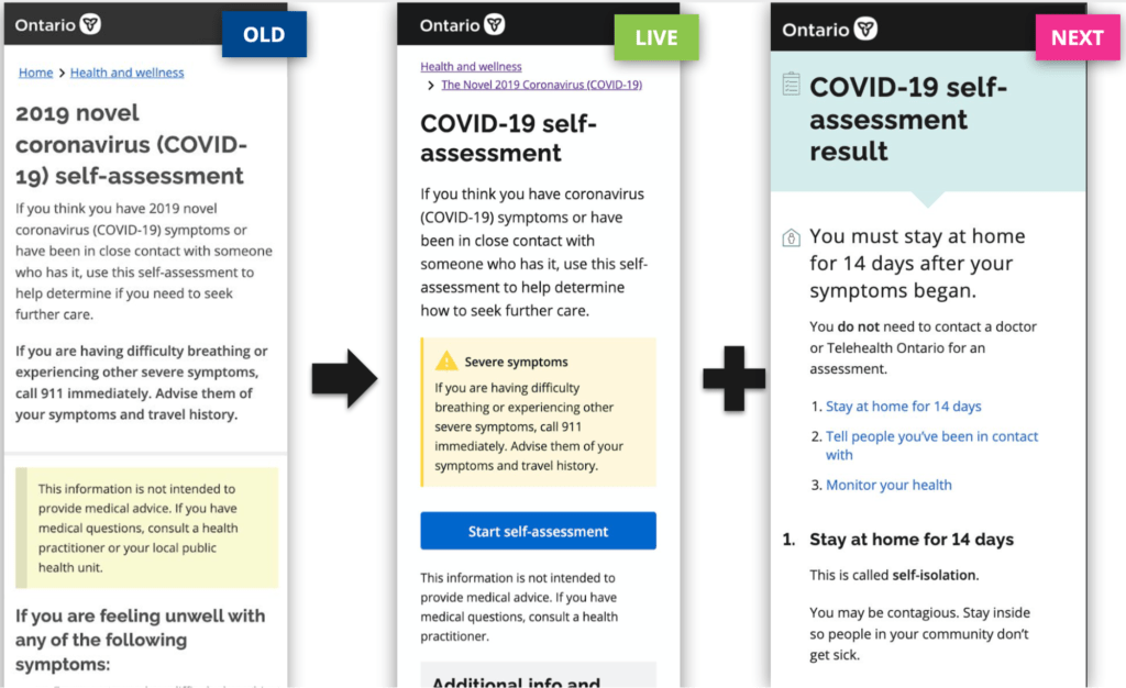 The Ontario team, led in part by Spencer Daniels, quickly iterated on the site, leveraging usage data and user feedback to almost entirely rewrite the government’s Covid-19 advice in simpler and accessible language. This helped reduce unwarranted calls to the province’s help lines.