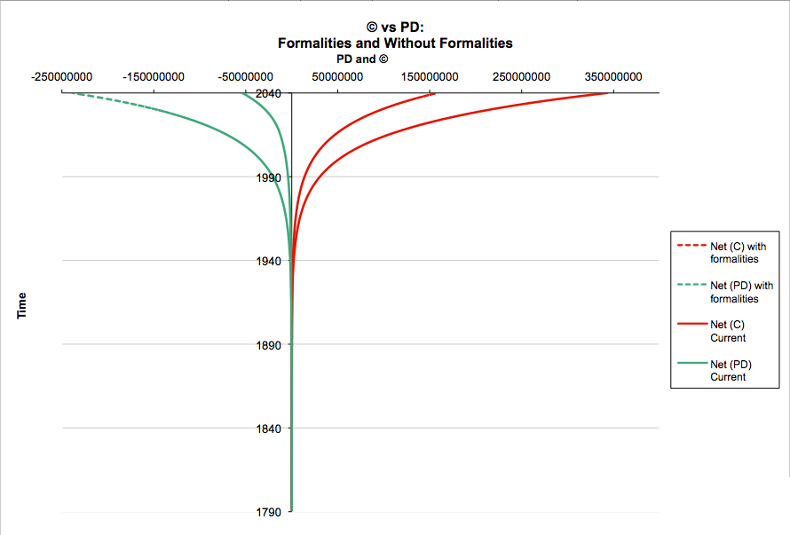The post essentially discusses two things. The first half reviews and assesses the U.S. District Court for the Northern District of California (or the Ninth Circuit for those who know their courts) decision on a copyright case called Kahle vs. Gonzales (broadly themed around the issue of Free Culture that Lessig has championed). The court ruled against Lessig and his team so he dissects their response. In the post’s second part Lessig diagnoses that his argument might have been better expressed visually. He then outlines a model, and a graph, he developed to do just this. Most importantly, he posts the basic spreadsheet on his blog and states: