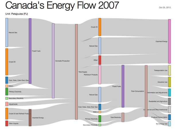 If you haven’t seen it yet, Glen Newton has done some really awesome visualizations of Canada’s energy production/consumption data. Here’s a version I “edited”: